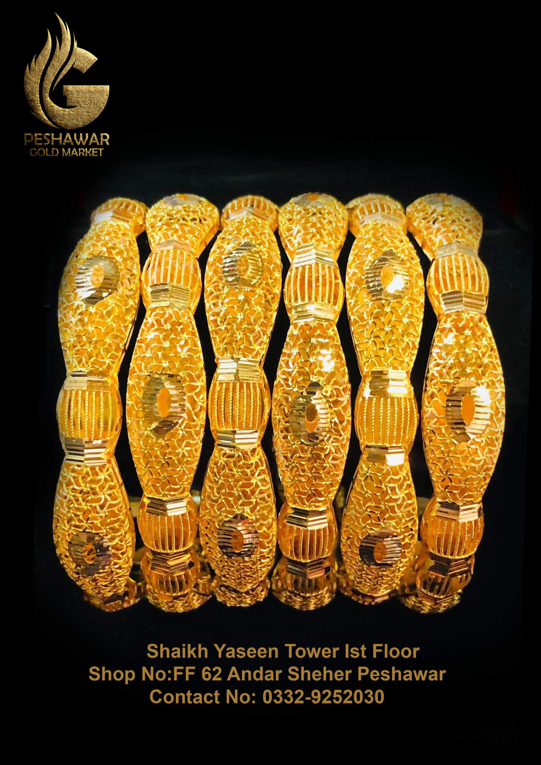 These stunning gold bangles are crafted 0f 21 carats that suit to any outfit. Bangles are symbolic of beauty.