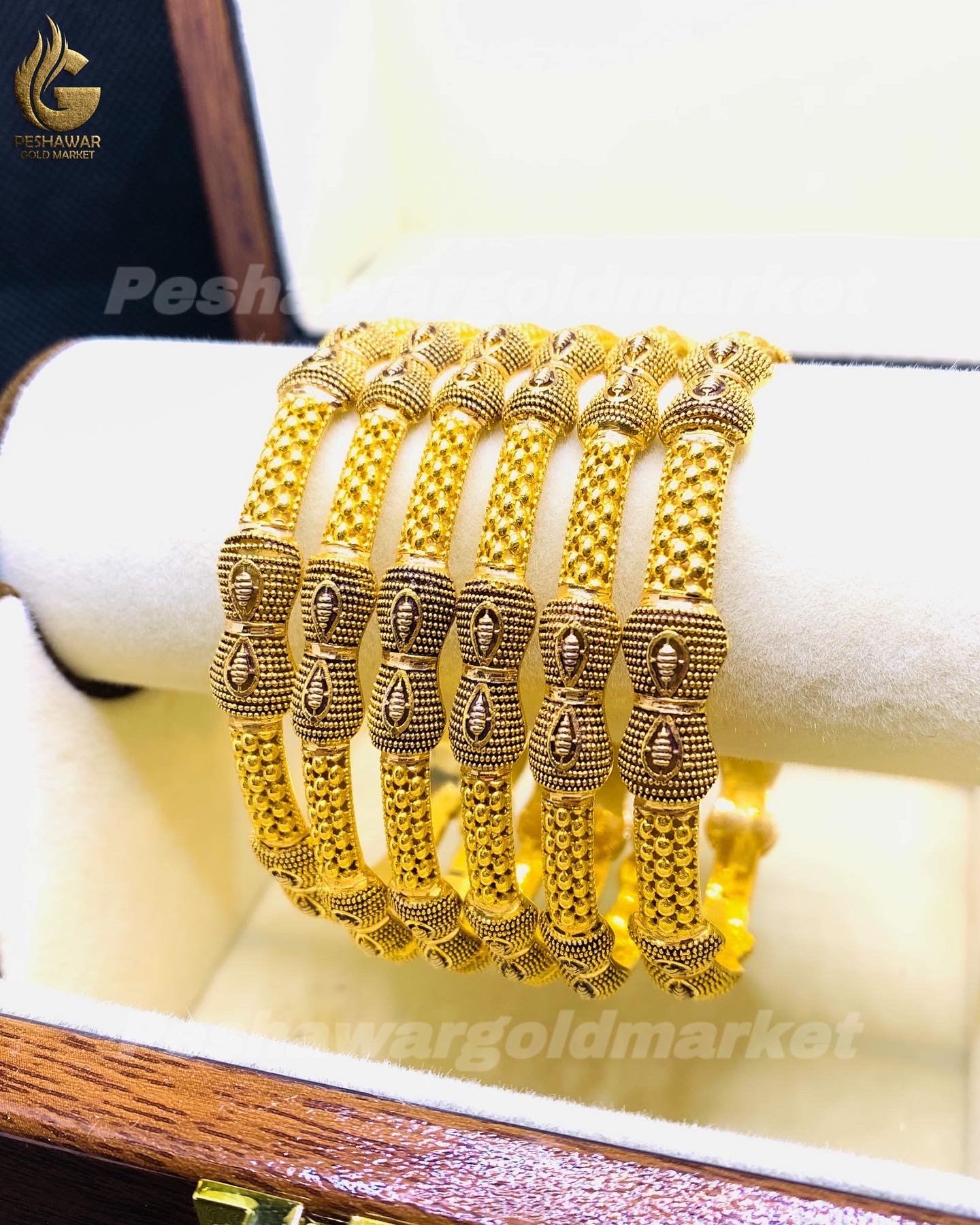 Behold the opulent radiance of our Aurelian Cascade Gold Bangles Set, a masterpiece of artisanal craftsmanship and luxurious design. This set of meticulously crafted bangles is designed to evoke a sense of timeless elegance and refined beauty. Each bangle in the set is cast in pure gold, ensuring a lustrous shine that catches the light with every movement. The design features a captivating cascade motif, with each bangle delicately interlocking to create a stunning visual display on your wrists. Whether worn as a set for a striking statement or individually for a touch of sophistication, these bangles exude an air of regal allure that commands attention. Elevate your ensemble to new heights of luxury with our Aurelian Cascade Gold Bangles Set, a testament to the enduring allure of gold craftsmanship.