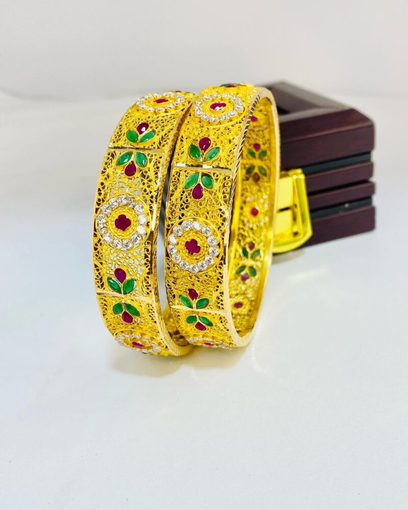 Gold Bangles Jewellery in Paksitan for Women Online with Modern Designs Jewellery plays a significant role in the well-being of every individual. Besides this, it is human nature to look beautiful and charming. To be precise, Bangles are one of the most luxurious items of jewellery. As it plays a vital role in keeping one’s personality even more gorgeous. Biologically, Bangles boost the circulation of blood. In ancient times, technology was not advanced enough and proved to be a limitation in the way of unique varieties. As the time passed and technology grew, there has been a great advancement in the manufacturing of jewellery. That is why Bangles are not limited in their variety in this contemporary era. Following are the categories of Bangles: